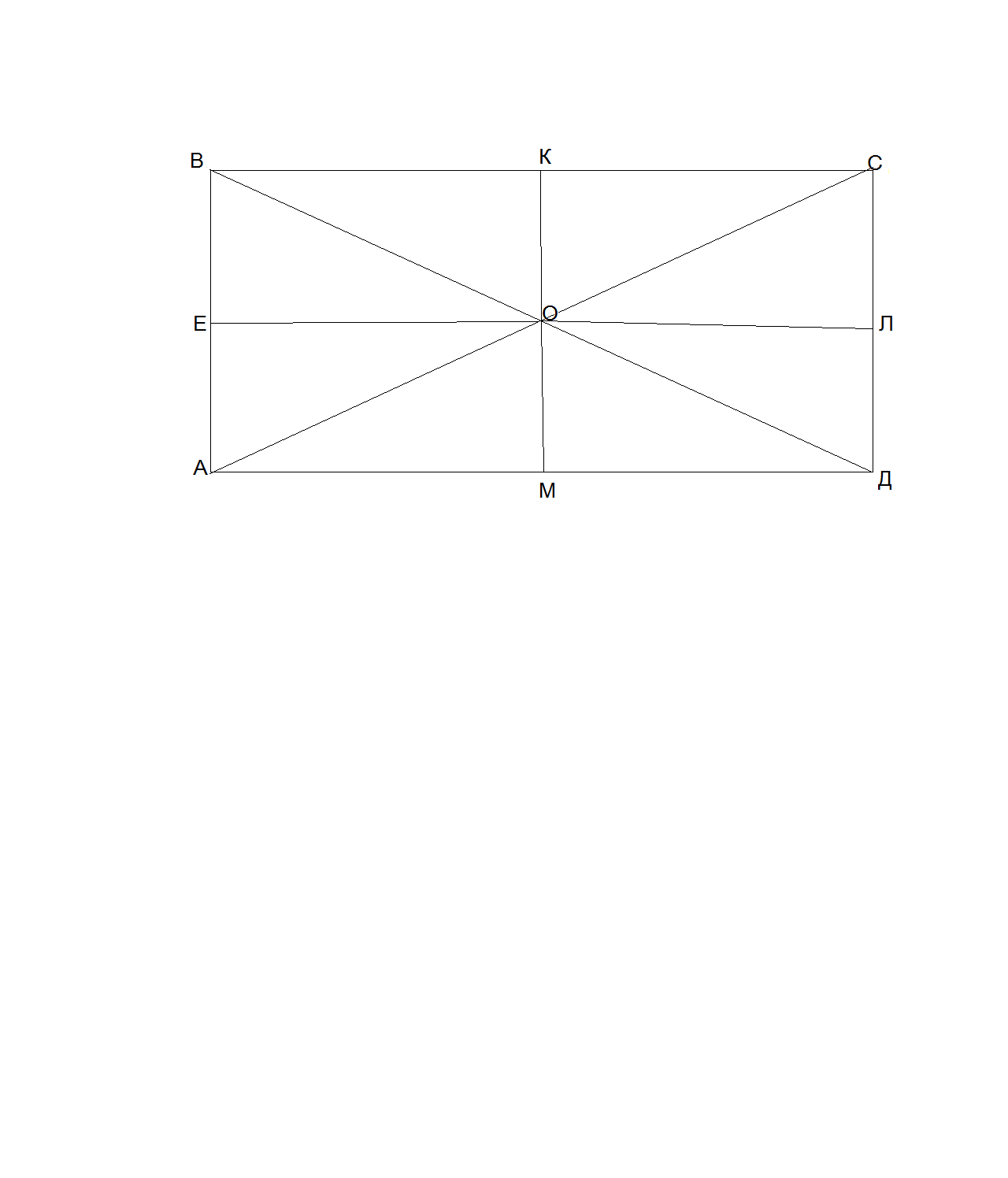 Известно, что точки пересечения диагоналей делают все образовавшие отрезки равными (ВО=ОС=ОД=ОА), отсюда КМ паралельна СД паралельна ВА и они между собой равные. Так же ВС паралельно ЕЛ паралельно АД, и они между собой равны.