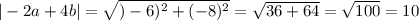 модуль вектора -2a+4b= корень из {6 квадрат +0 квадрат }=6